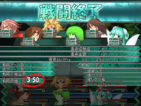 戦闘をどの程度上手く進めたかを表す戦闘評価が下される。