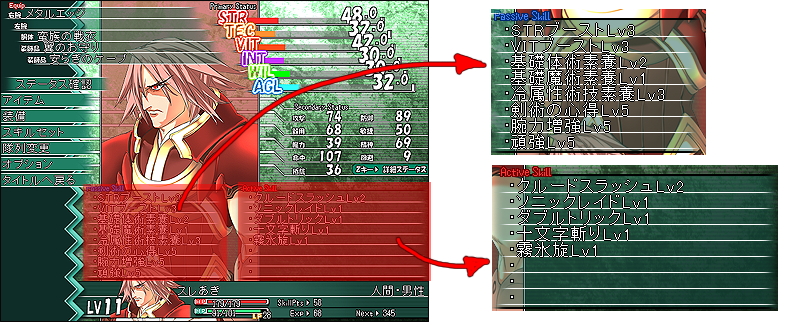 戦闘に勝利する事で各キャラ毎に蓄積されるポイントを使用して、スキルを習得する事が出来る